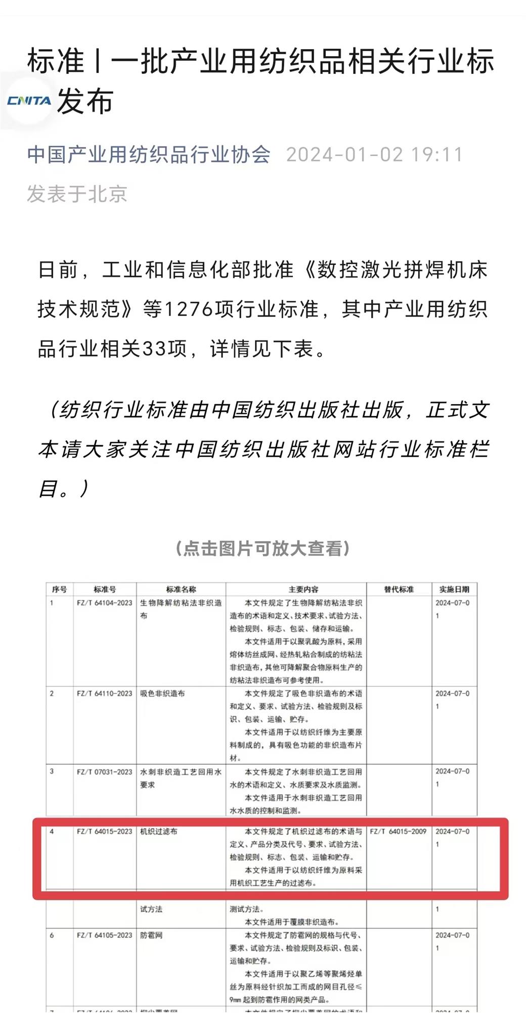 ÁÉÄþpgÉͽðÅ®Íõ¹¤Òµ¼¯ÍÅ·ÄÖ¯ÓÐÏÞ¹«Ë¾ÔÙ´ÎÖ÷³Ö²¢¼ÓÈëÆð²ÝµÄÐÐÒµ±ê×¼¡¶»úÖ¯¹ýÂ˲¼¡·(FZ/T 64015-2023)£¬£¬£¬£¬£¬£¬ÒÑÓÚ12ÔÂ20ÈÕÕýʽÐû²¼£¬£¬£¬£¬£¬£¬½«ÓÚ2024Äê7ÔÂ1ÈÕÕýʽʵÑé¡£¡£¡£¡£¡£¡£¡£¡£